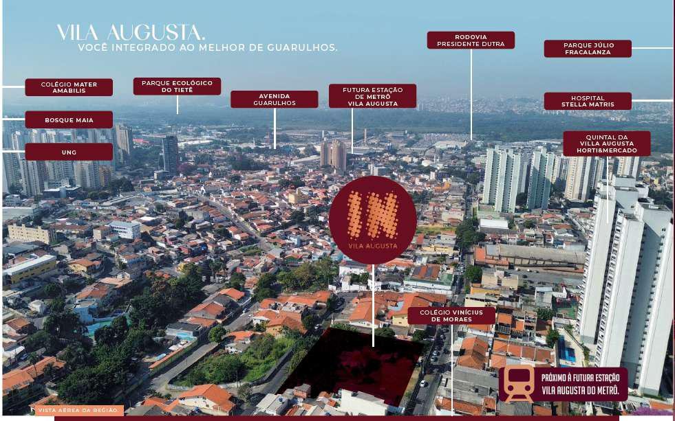 Situado na Vila Augusta, um dos bairros mais completos e valorizados de Guarulhos, o empreendimento oferece o equilíbrio perfeito entre conveniência e mobilidade.